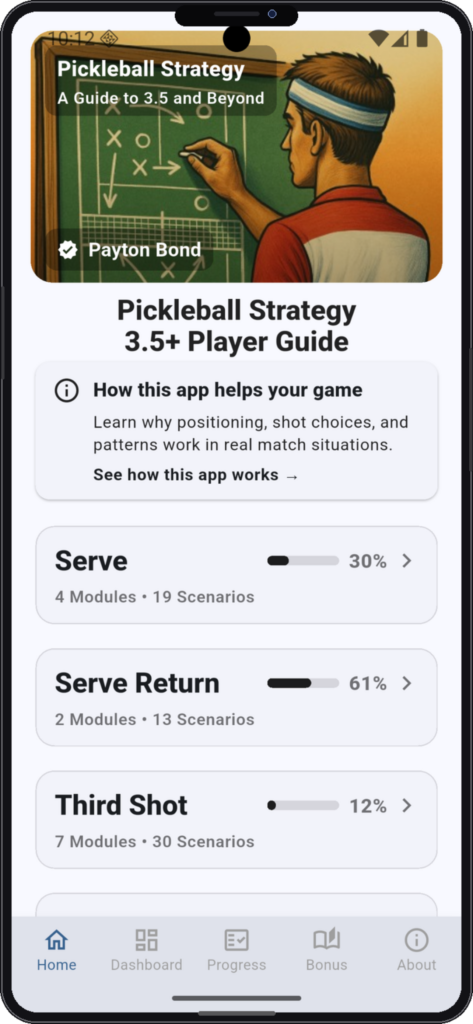 The concepts in this book are also available in a structured, interactive format through the Pickleball Strategy App.